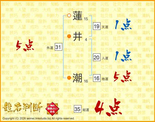 蓮井潮さんの総運は35画の4点!