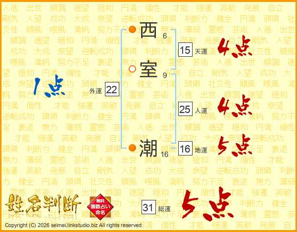 西室潮さんの総運は31画の5点!