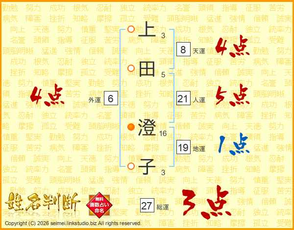 上(3画)田(5画) 澄(16画)子(3画)