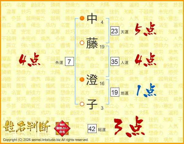 中(4画)藤(19画) 澄(16画)子(3画)