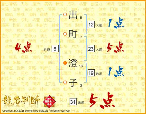 出(5画)町(7画) 澄(16画)子(3画)