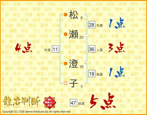 松(8画)瀬(20画) 澄(16画)子(3画)