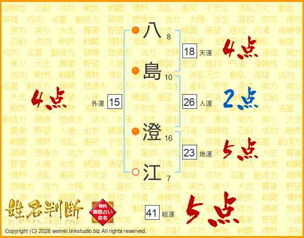 八(8画)島(10画) 澄(16画)江(7画)