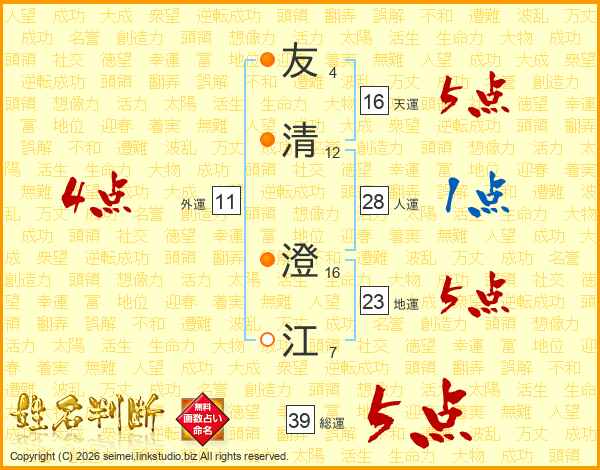 友清澄江さんの総運は39画の5点!