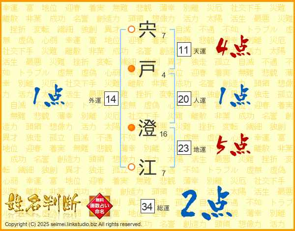 宍戸澄江さんの総運は34画の2点!