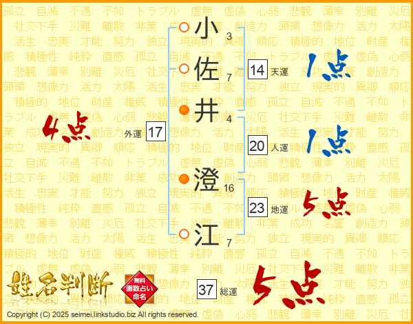 小(3画)佐(7画)井(4画) 澄(16画)江(7画)