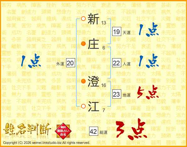 新庄澄江さんの地運は23画の5点!