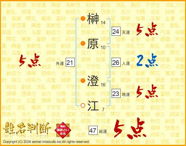 榊原澄江さんの総運は47画の5点!