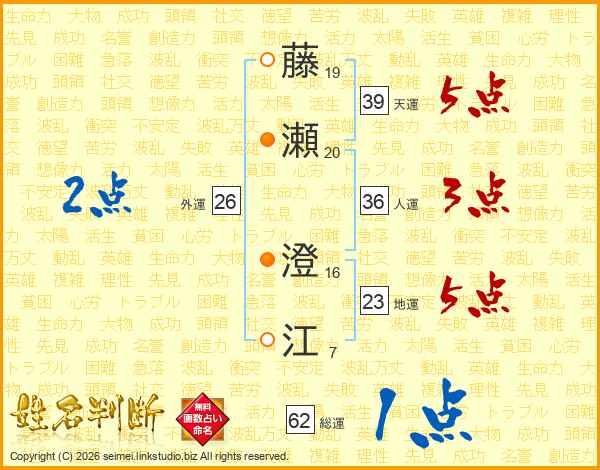 藤(19画)瀬(20画) 澄(16画)江(7画)