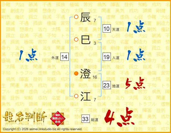 辰巳澄江さんの総運は33画の4点!