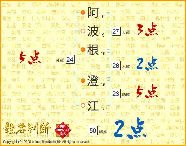 阿波根澄江さんの人運は26画の2点!