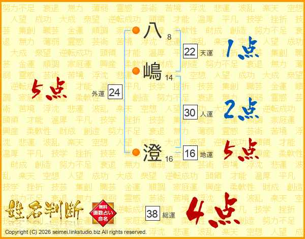 八嶋澄さんの総運は38画の4点!