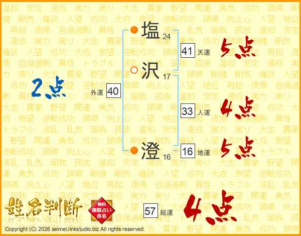 塩沢澄さんの総運は57画の4点!