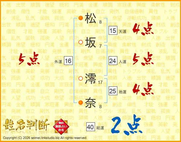 松(8画)坂(7画) 澪(17画)奈(8画)