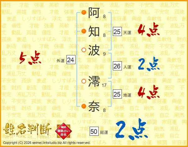 阿知波澪奈さんの天運は25画の4点!