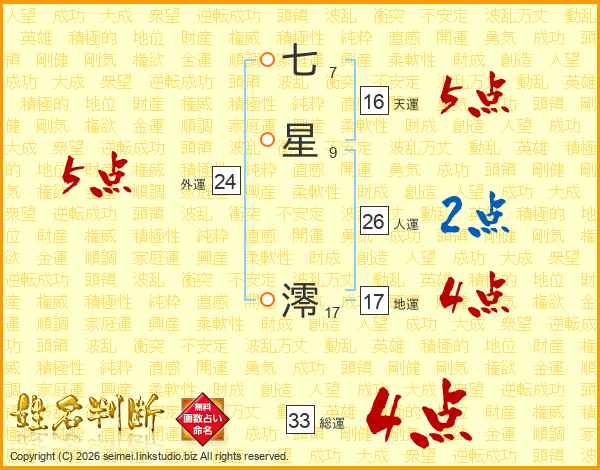 七星澪さんの総運は33画の4点!