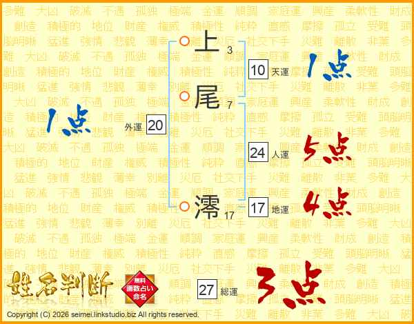 上尾澪さんの総運は27画の3点!