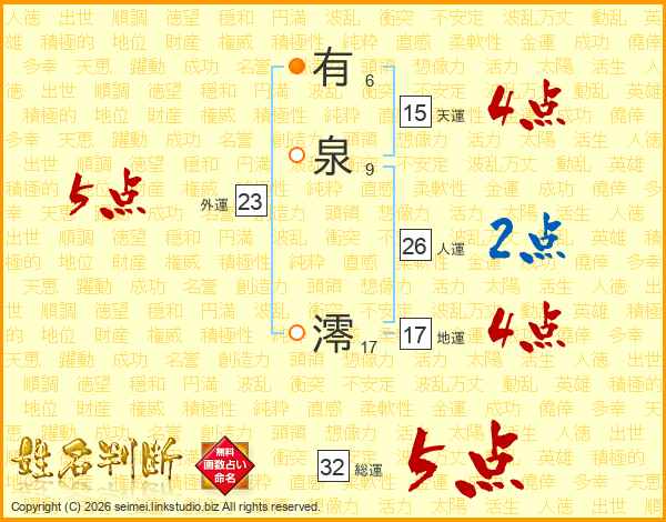 有泉澪さんの人運は26画の2点!