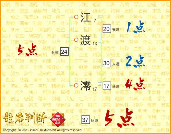江渡澪さんの総運は37画の5点!
