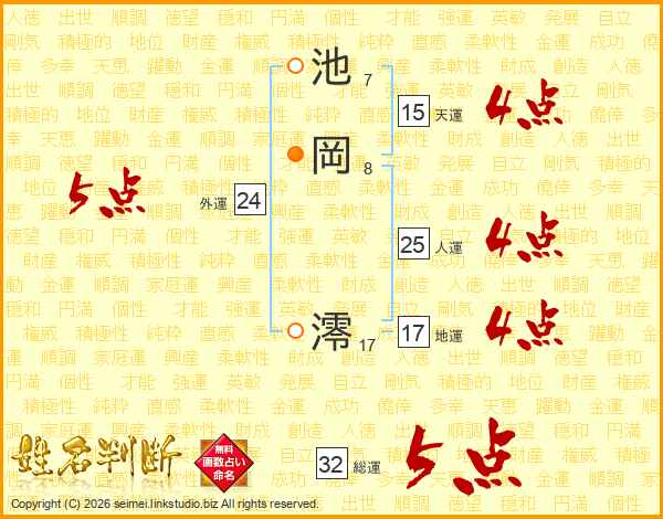池岡澪さんの総運は32画の5点!