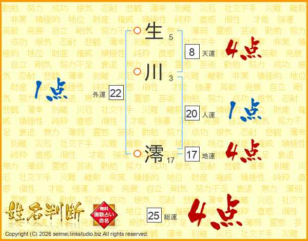 生川澪さんの総運は25画の4点!