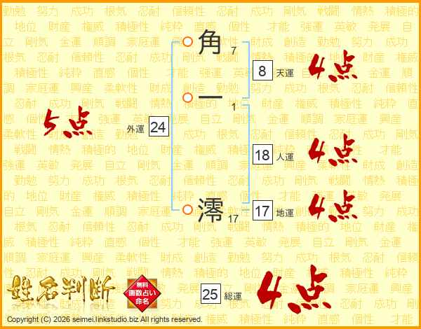 角一澪さんの外運は24画の5点!