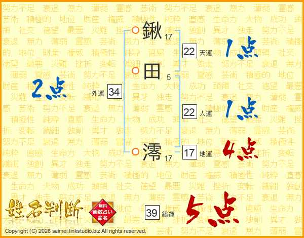 鍬田澪さんの総運は39画の5点!