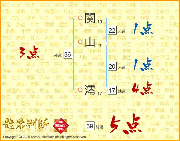 関山澪さんの総運は39画の5点!