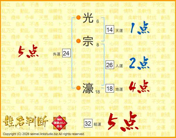光宗濠さんの総運は32画の5点!