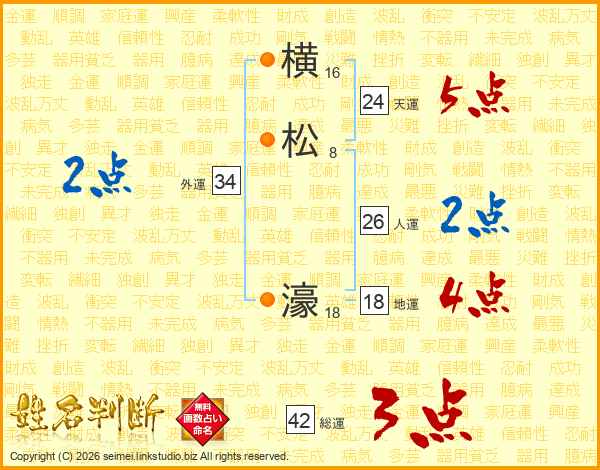 横松濠さんの人運は26画の2点!