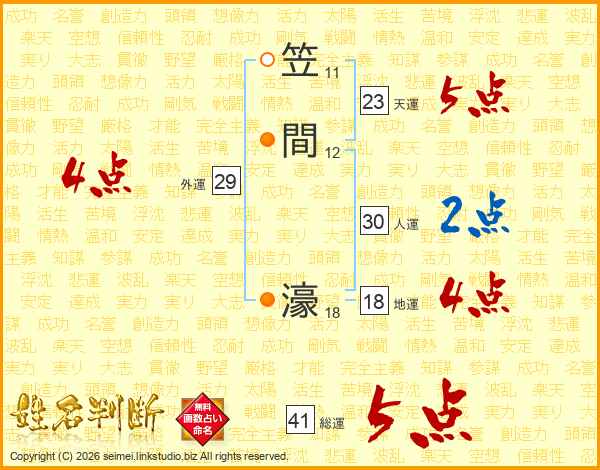 笠間濠さんの総運は41画の5点!