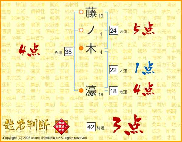 藤(19画)ノ(1画)木(4画) 濠(18画)