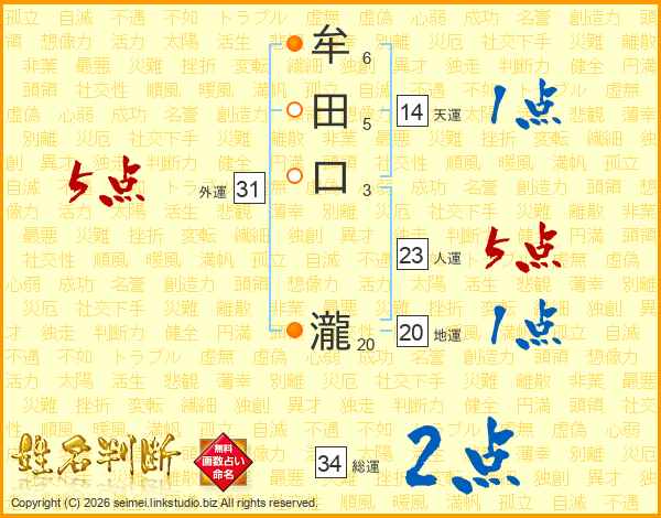 牟田口瀧さんの総運は34画の2点!