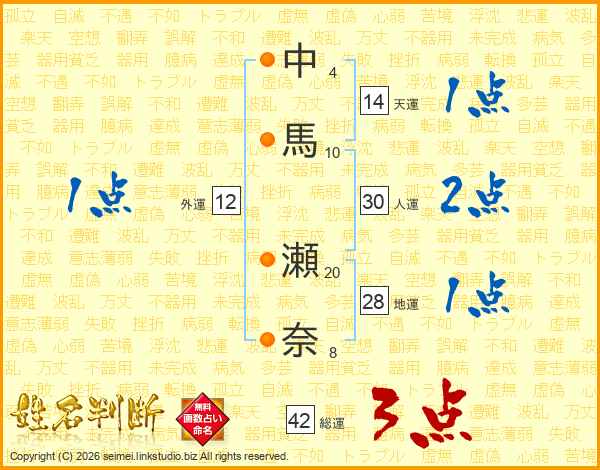 中馬瀬奈さんの天運は14画の1点!