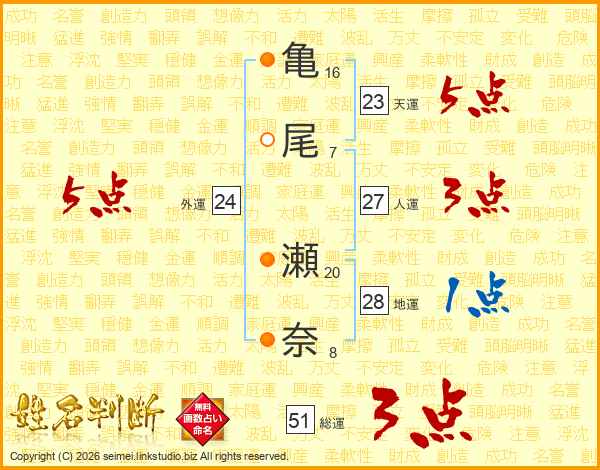 亀尾瀬奈さんの総運は51画の3点!