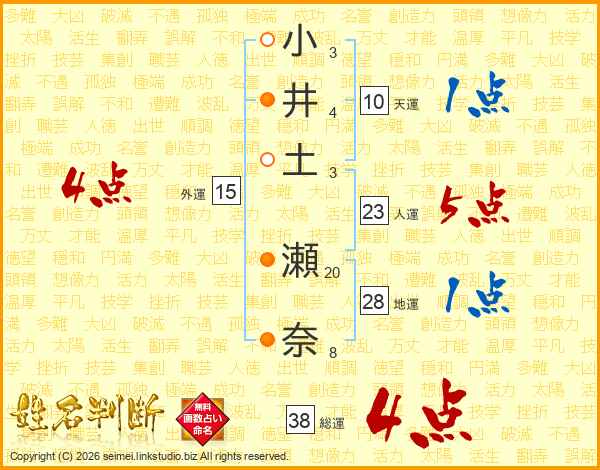 小(3画)井(4画)土(3画) 瀬(20画)奈(8画)