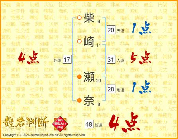 柴崎瀬奈さんの総運は48画の4点!