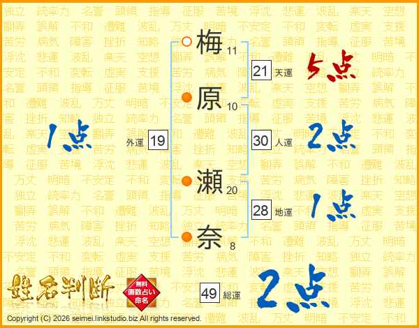 梅原瀬奈さんの総運は49画の2点!