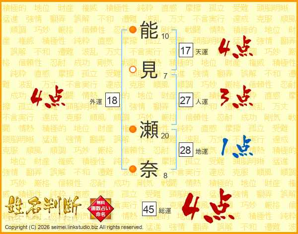 能見瀬奈さんの総運は45画の4点!