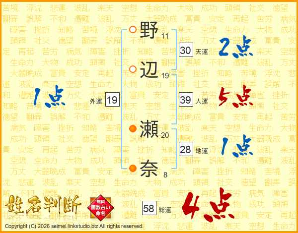 野辺瀬奈さんの総運は58画の4点!