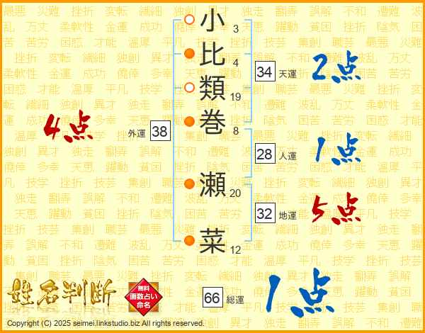 小比類巻瀬菜さんの外運は38画の4点!