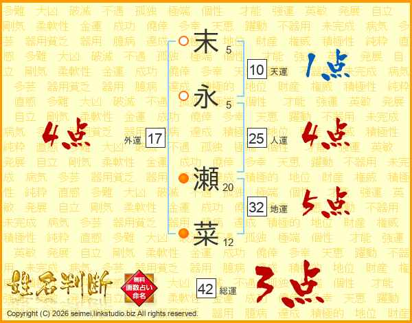 末永瀬菜さんの総運は42画の3点!