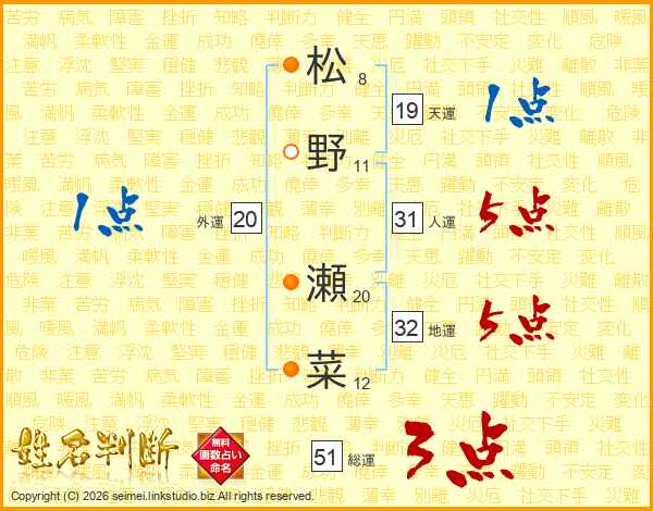 松野瀬菜さんの地運は32画の5点!
