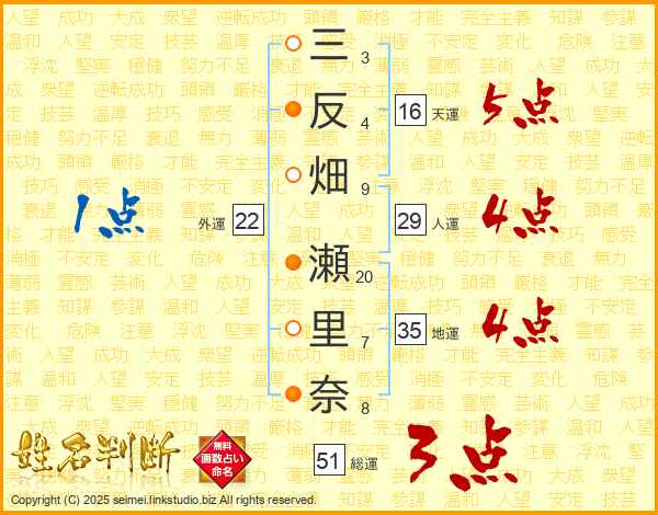 三反畑瀬里奈さんの総運は51画の3点!