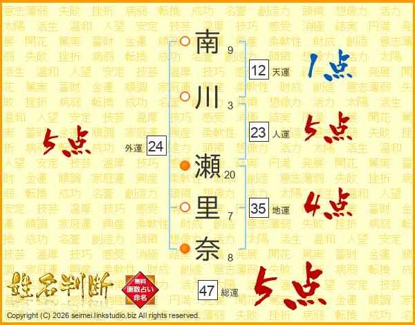 南川瀬里奈さんの総運は47画の5点!
