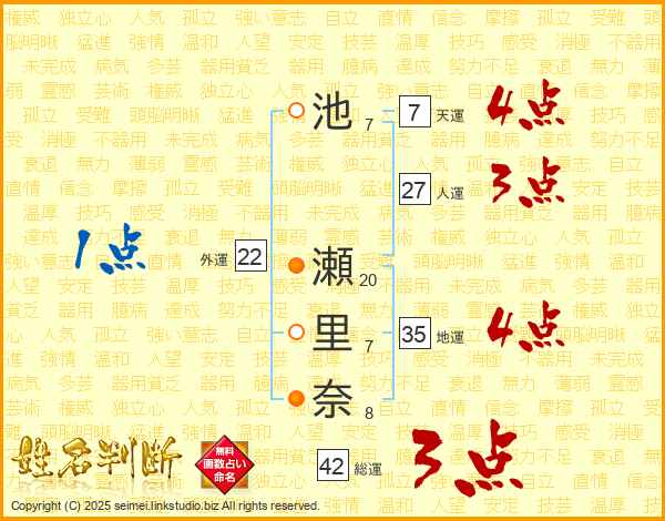 池瀬里奈さんの総運は42画の3点!