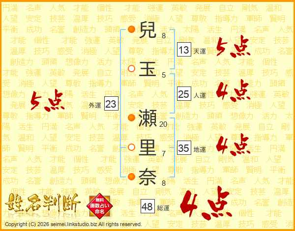 兒玉瀬里奈さんの総運は48画の4点!