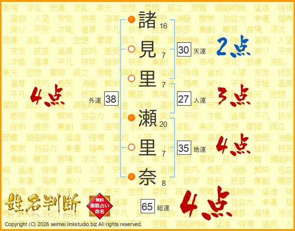 諸見里瀬里奈さんの総運は65画の4点!