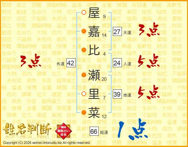 屋嘉比瀬里菜さんの総運は66画の1点!