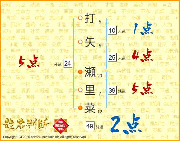 打矢瀬里菜さんの人運は25画の4点!